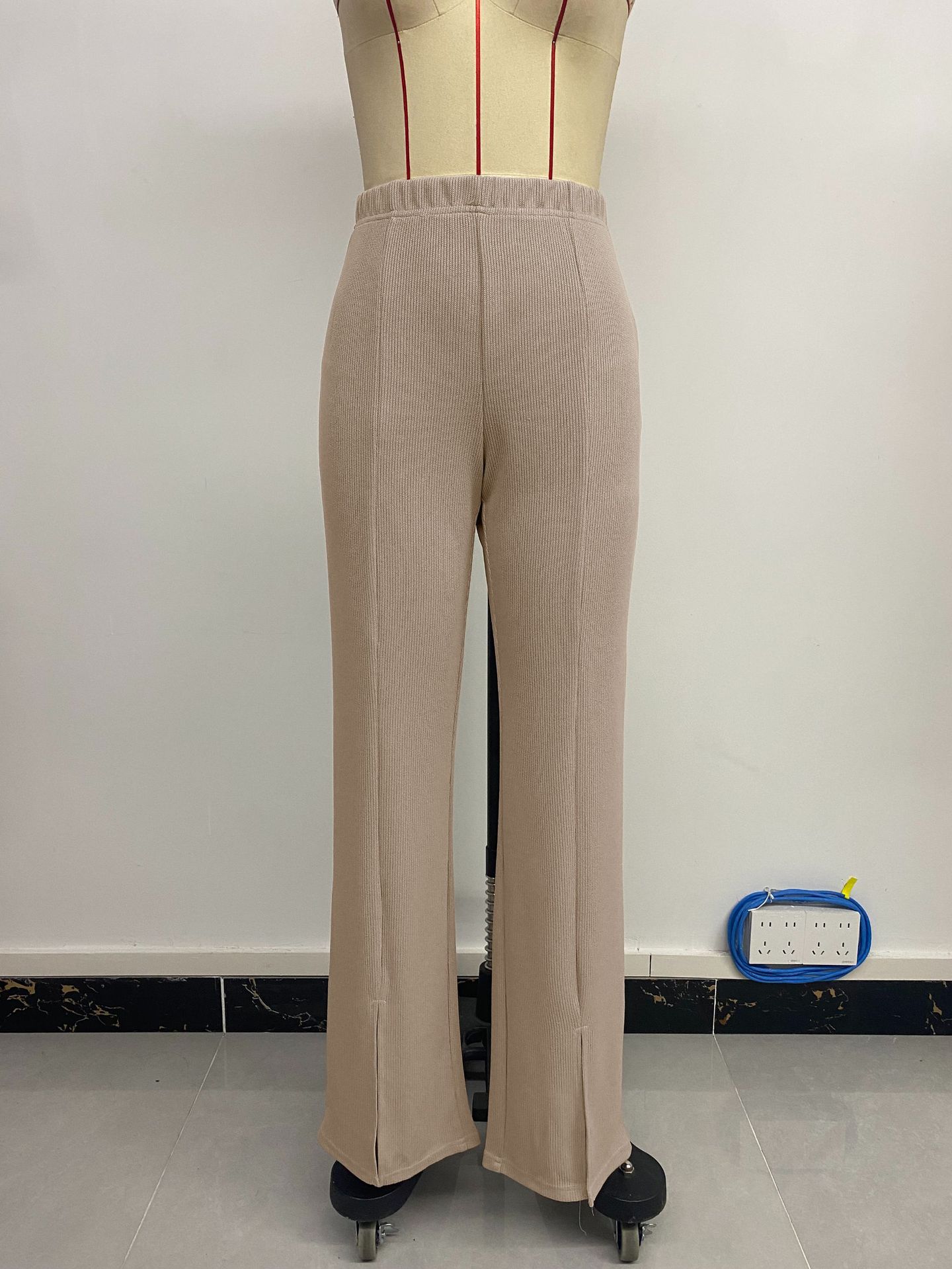 Autumn Office Casual Simple Loose High Waist Slit Solid Color Straight Leg Pants Women