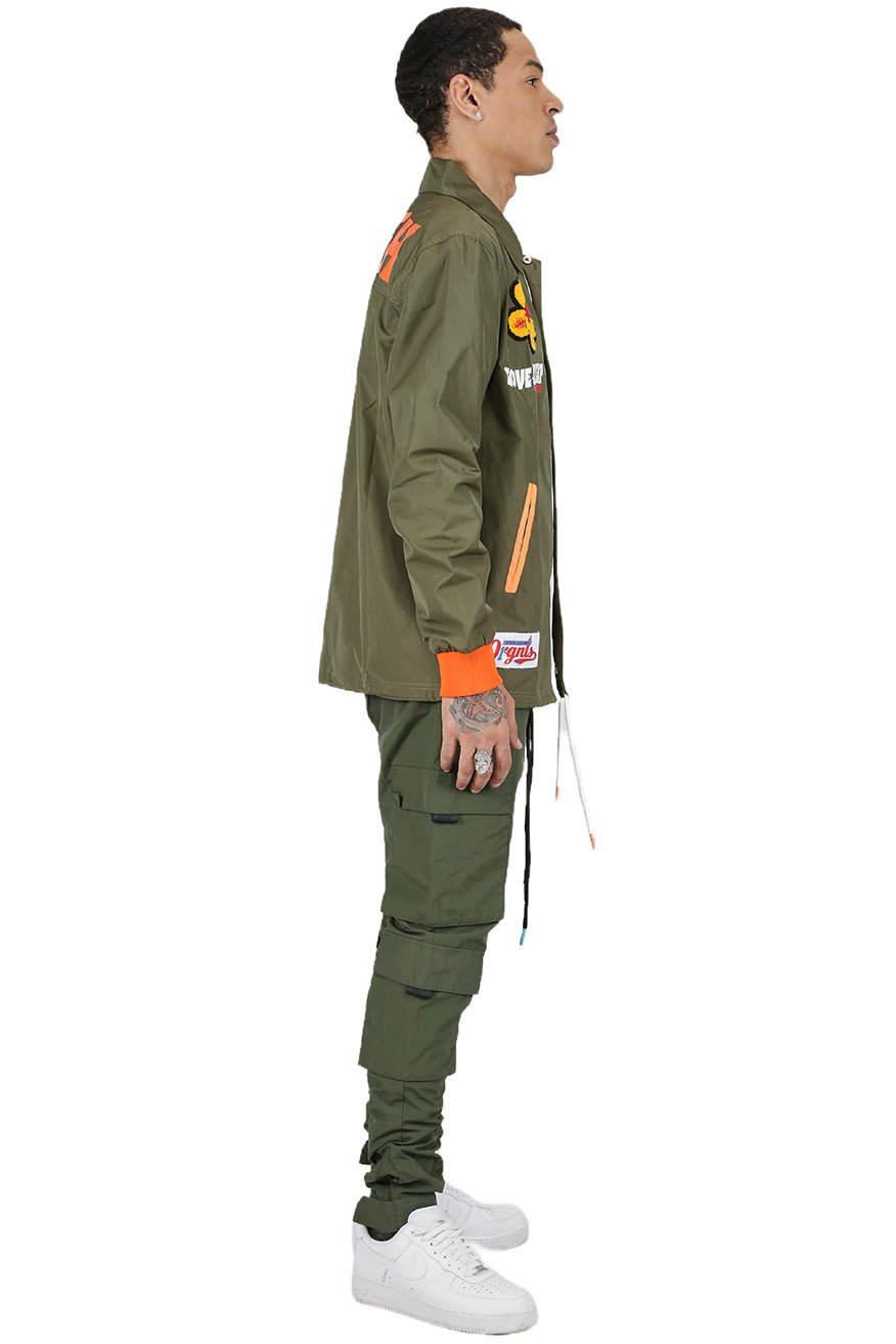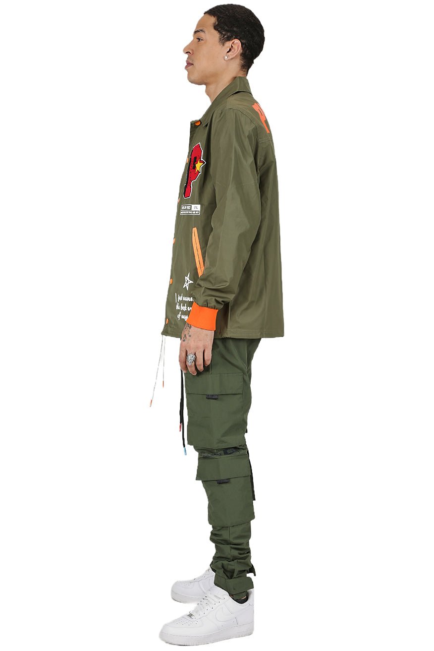 BELMONT Men's premium nylon long sleeve coach jacket with multi patches
