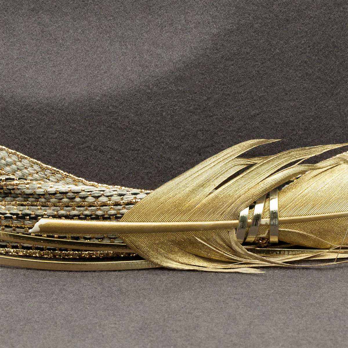 - Metallic Layered Hatband with Feather