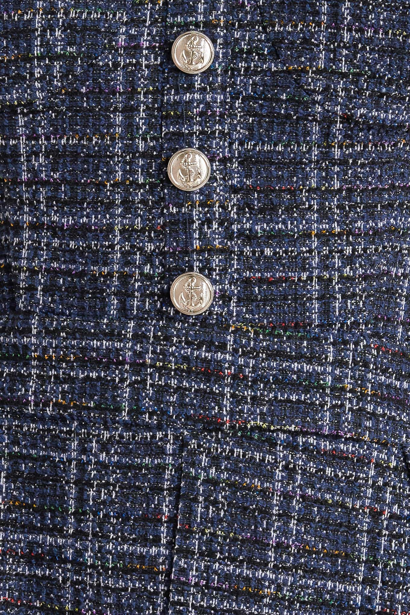 A tweed jumpsuit featuring sweetheart neckline, front button detail, side pockets and back zipper closure