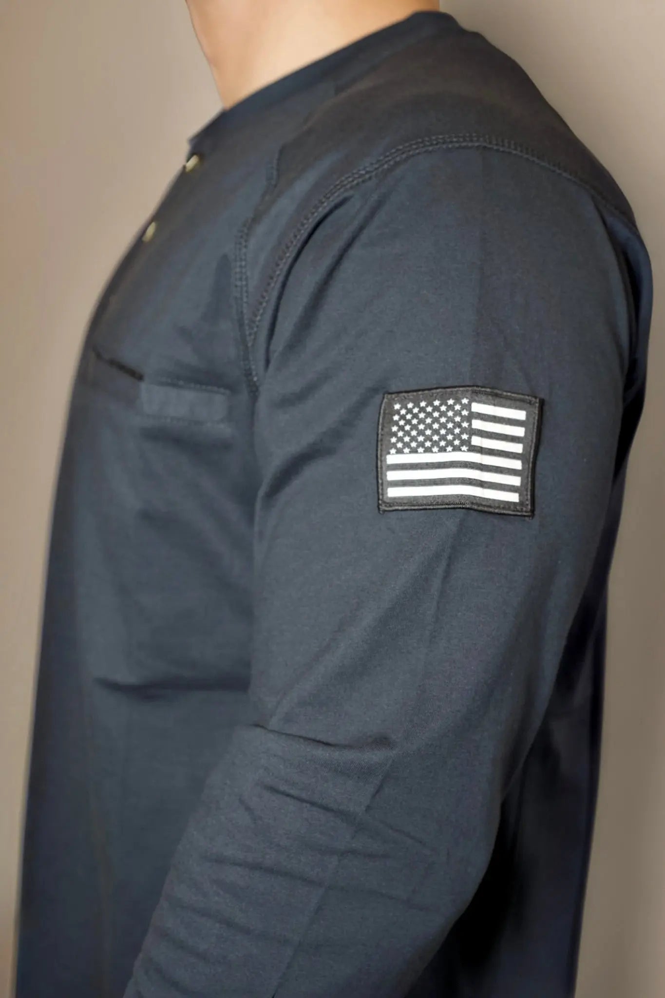 Left chest pocket with 1” Velcro in the middle.