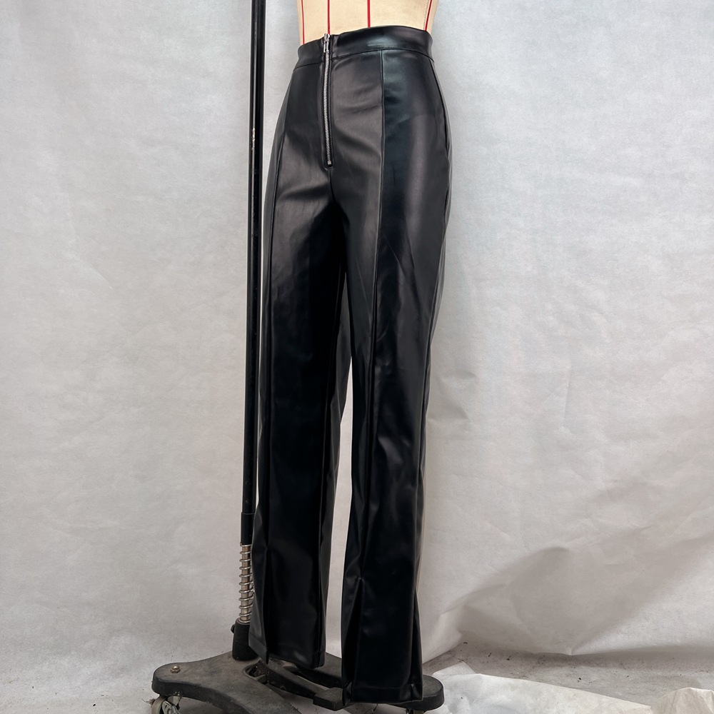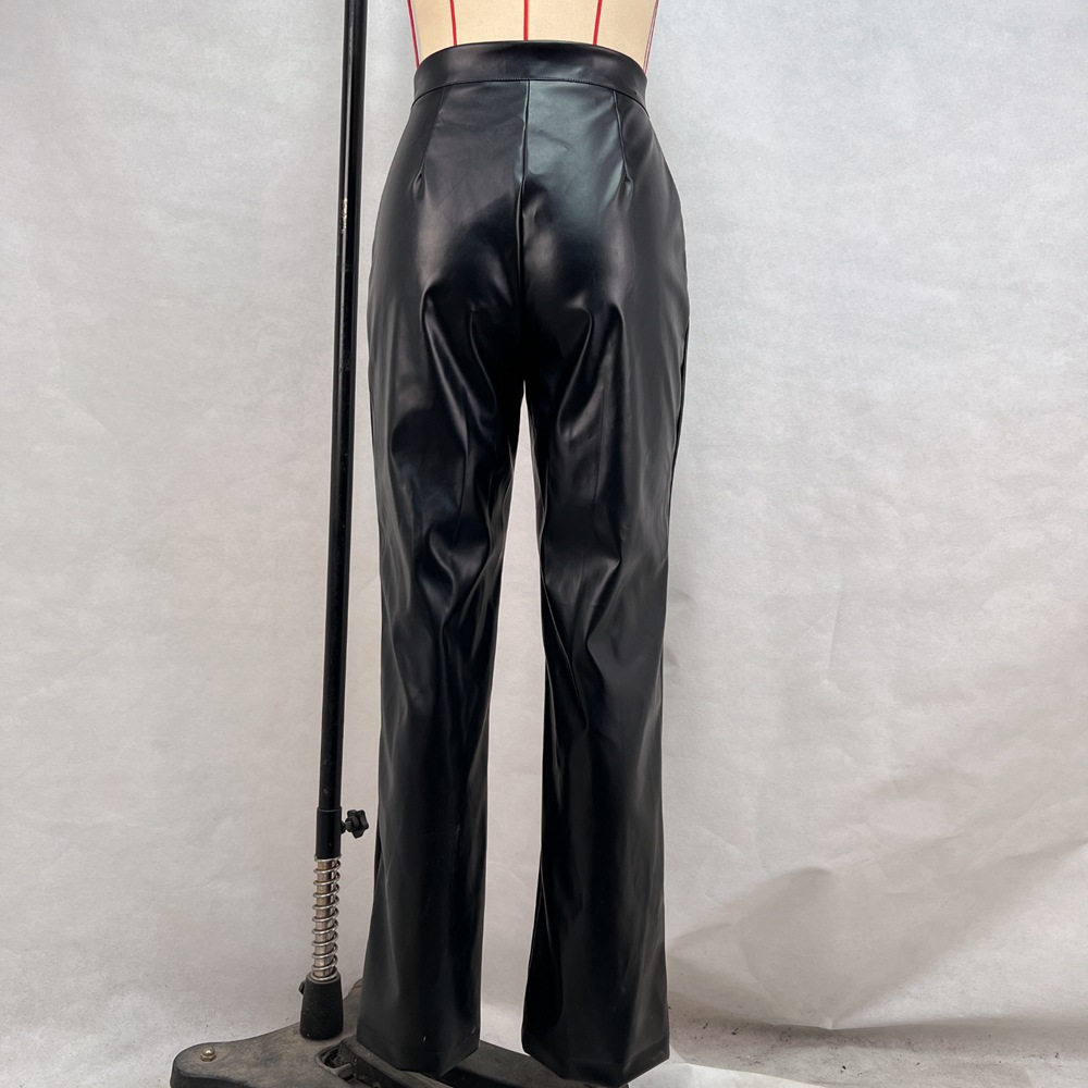 Leather Casual Pants Autumn Winter High Waist Slimming Casual Straight Pants Faux Leather Wide Leg Leather Pants Solid Color Split