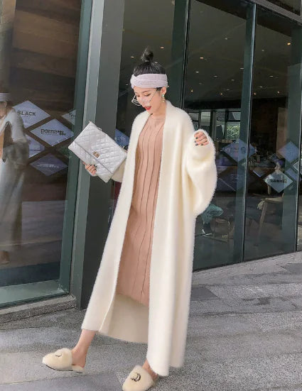 Unveil your effortless elegance with our stunning long cardigan, designed to envelop you in warmth and style. Crafted from luxurious rabbit hair, this cardigan is not just a piece of clothing; it's a statement of comfort and sophistication.