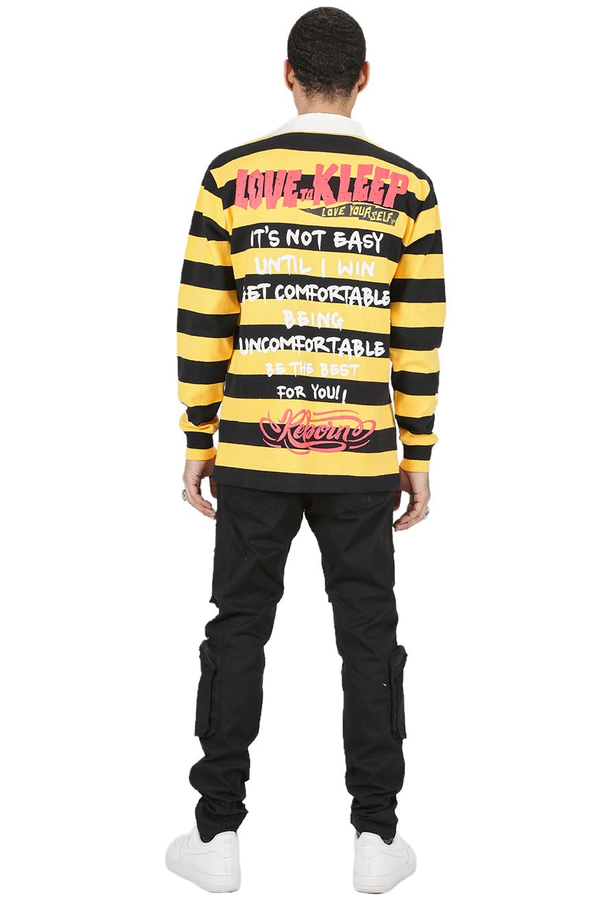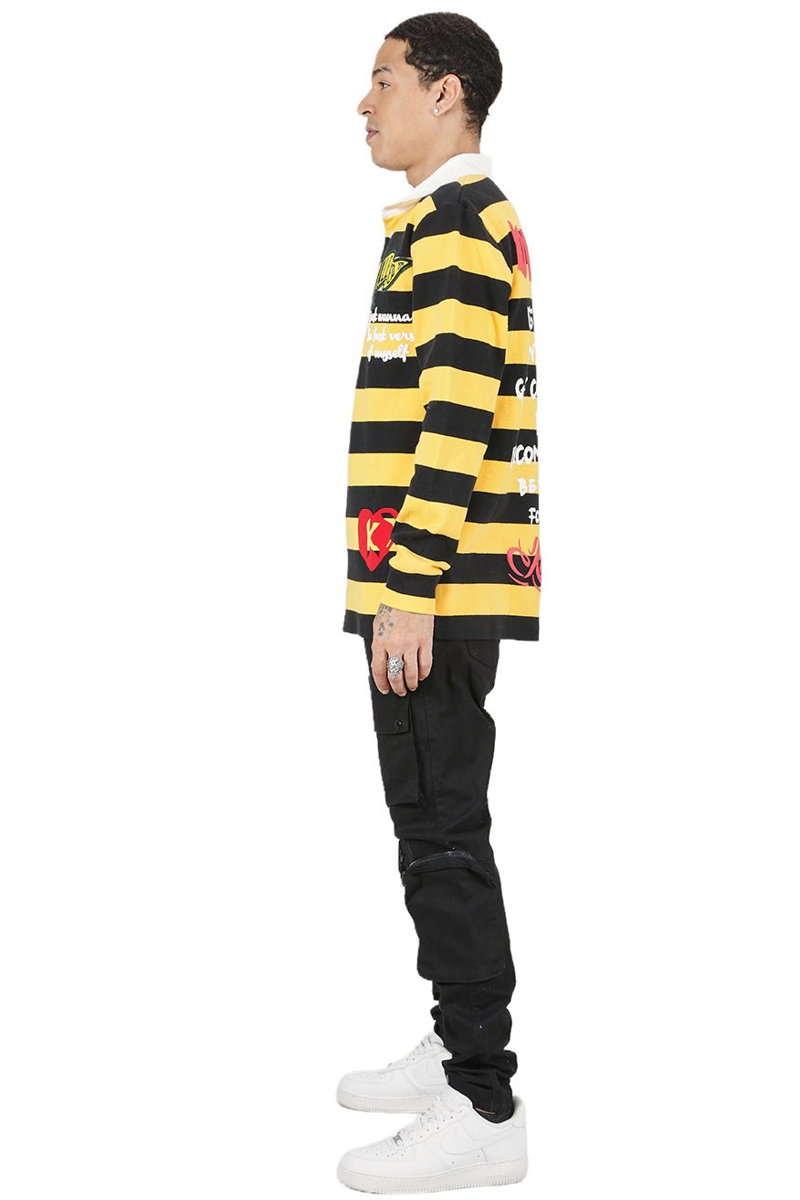 This trendy polo shirt contains heavy puff print effects and patch works. The theme of this shirt is traditional rugby polo shirt. On top of this traditional style, we arranged all the art works to make this polo shirt looks stylish and fit to street life style!!