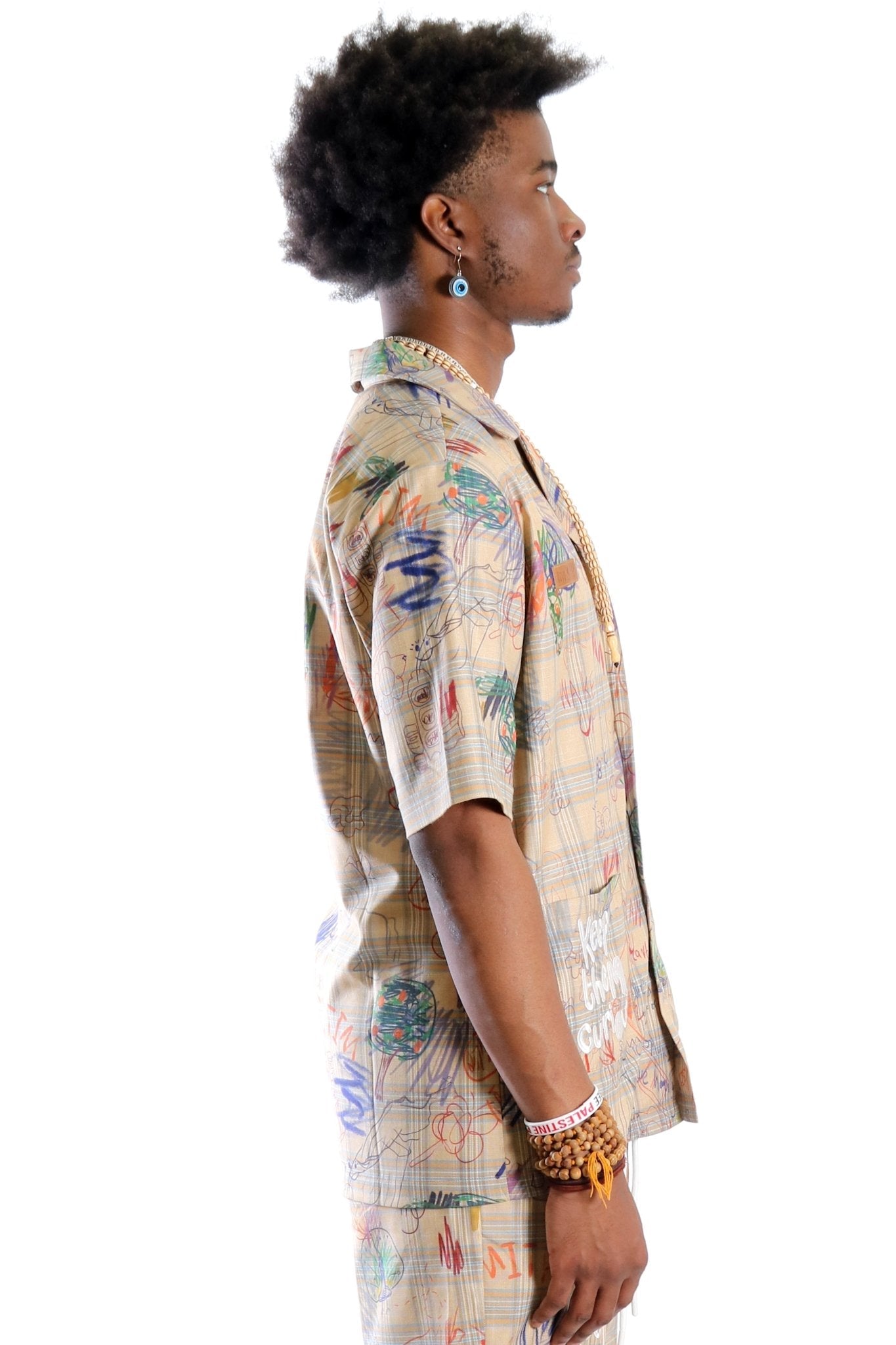 Maxis L.T.K. Men's premium Short Sleeve Plaid button down shirt with hand sketch drawing pop art