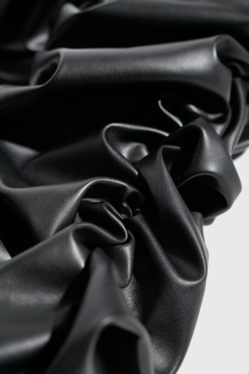 Metal Logo Pinched Comfortable Faux Lambskin Jeans