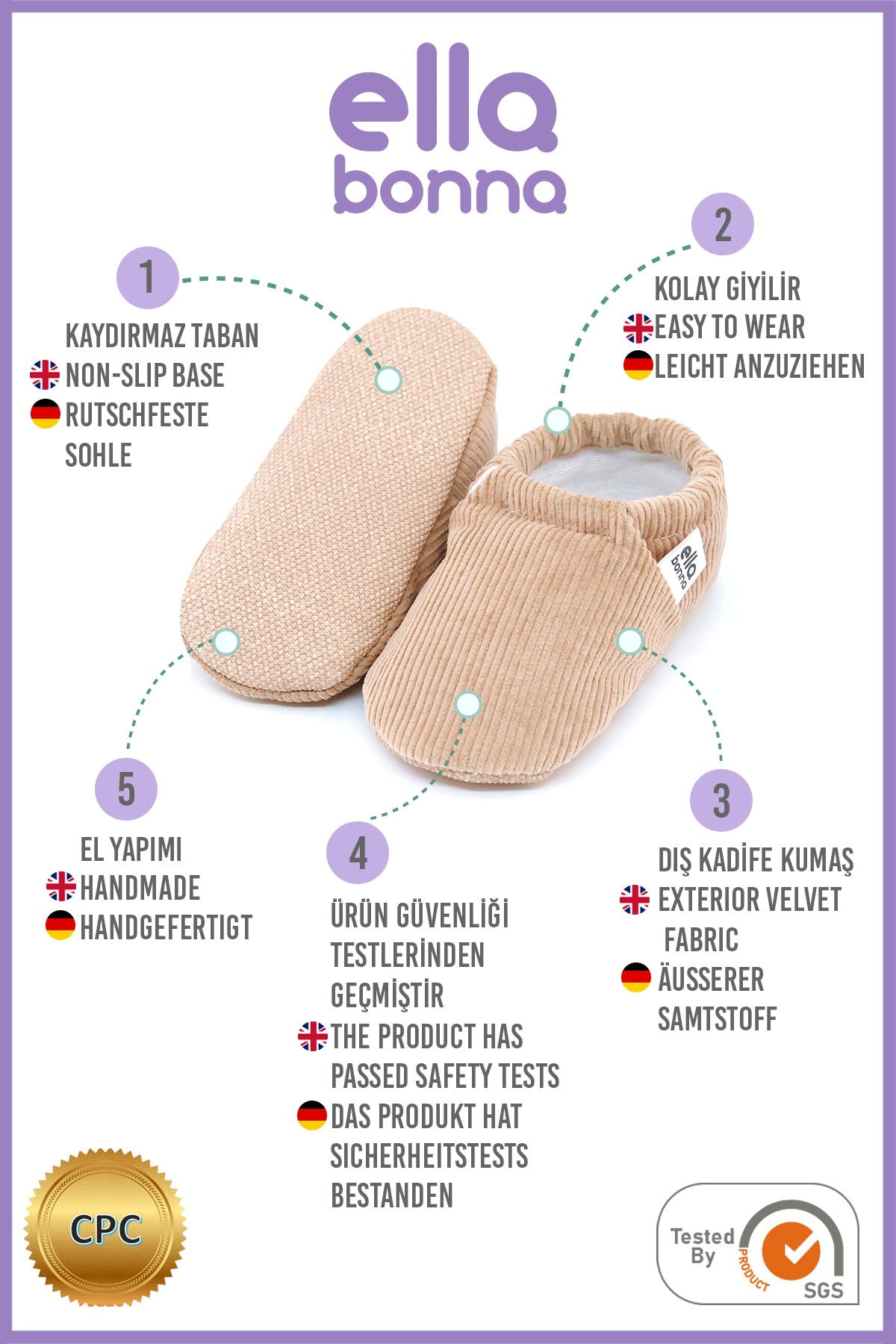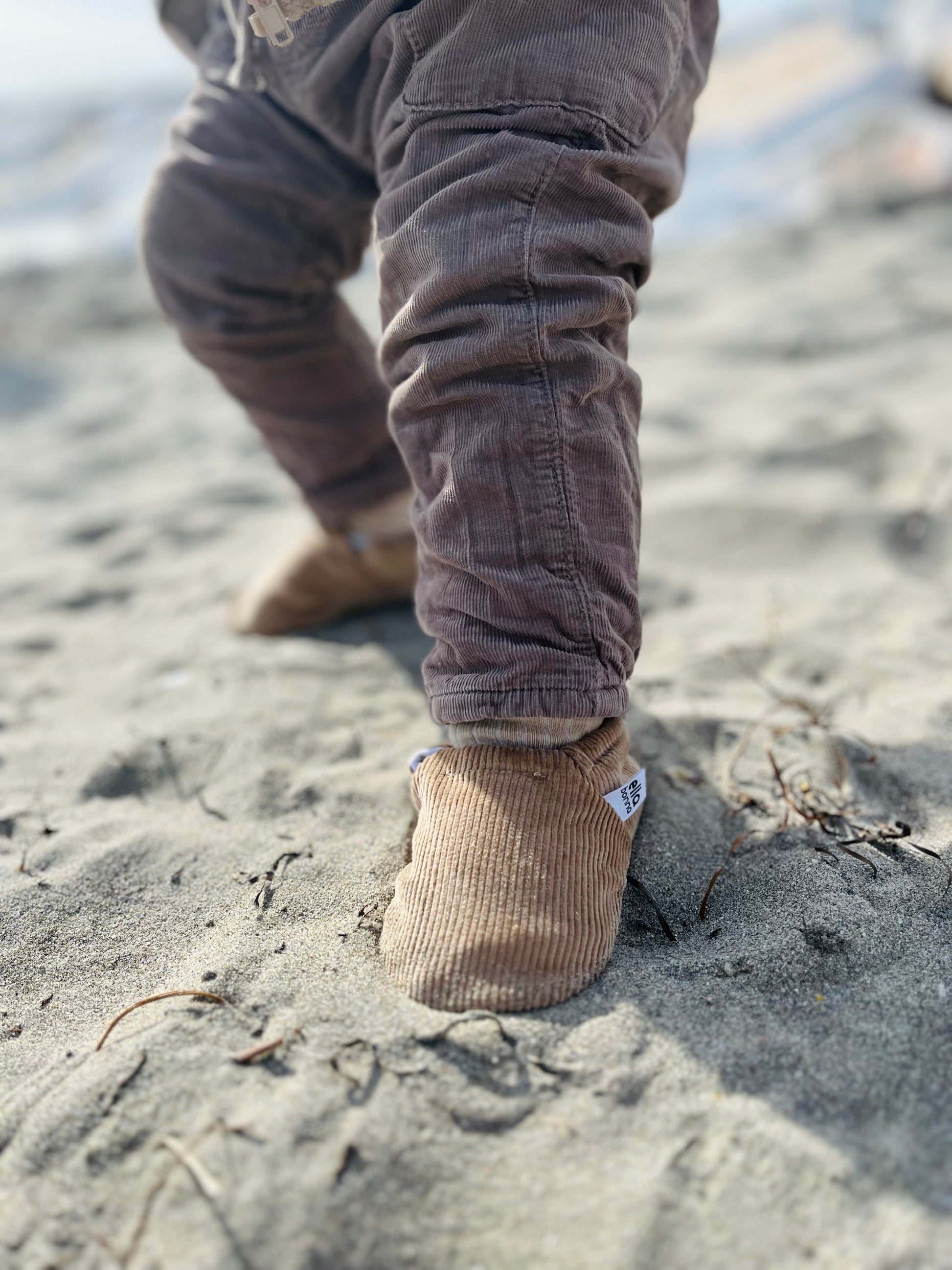 Organic Cotton Corduroy Home Nursery Moccasin Shoes Beige