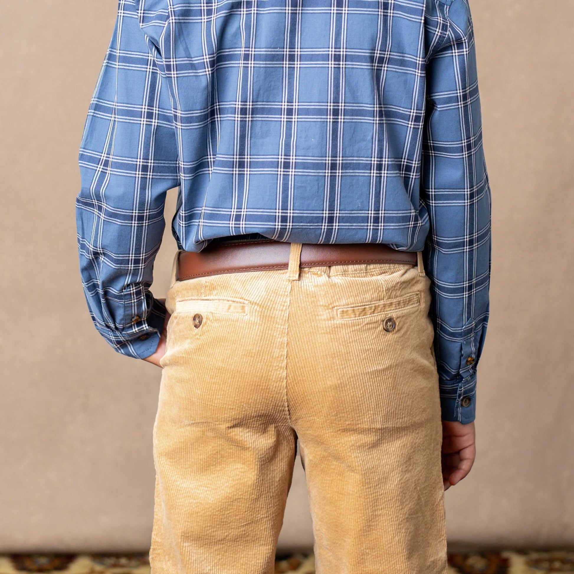 Just as perfect for picture time as they are for play time, our pants are crafted from a fine wale organic cotton corduroy with just the right amount of stretch for an active boy. Features traditional straight leg styling with a zip fly closure, faux horn button, and an adjustable inner elastic waistband for a flexible fit. Side pockets and back welt pockets complete the look.