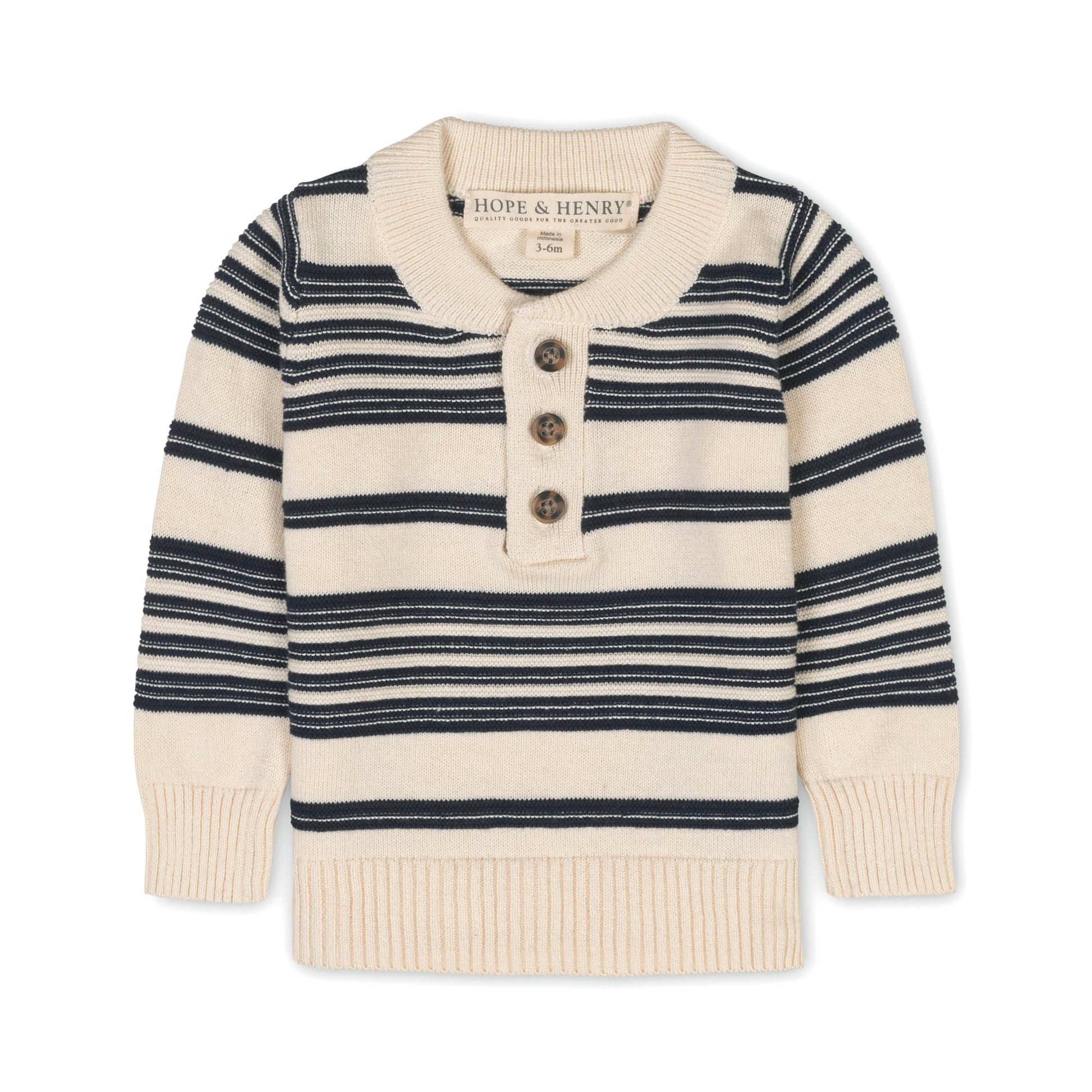 Our long sleeve sweater henley in soft organic cotton combines the sporty look of a henley with the coziness of a sweater for the ultimate in comfort and style. Features faux suede elbow patches, matte button closure at the center front placket, and rib trim at the cuffs and collar. A sophisticated twist on a classic.