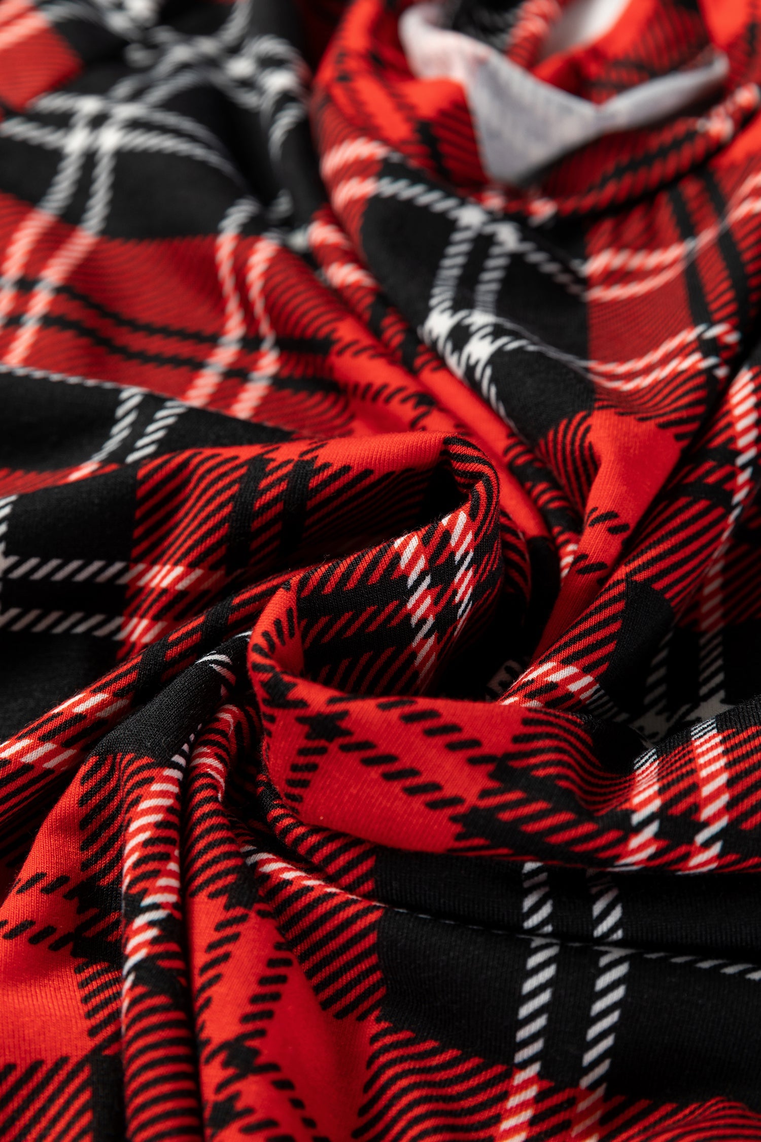 Red Festive Plaid Print Round Neck Long Sleeve and Pants 2 Piece Lounge Set