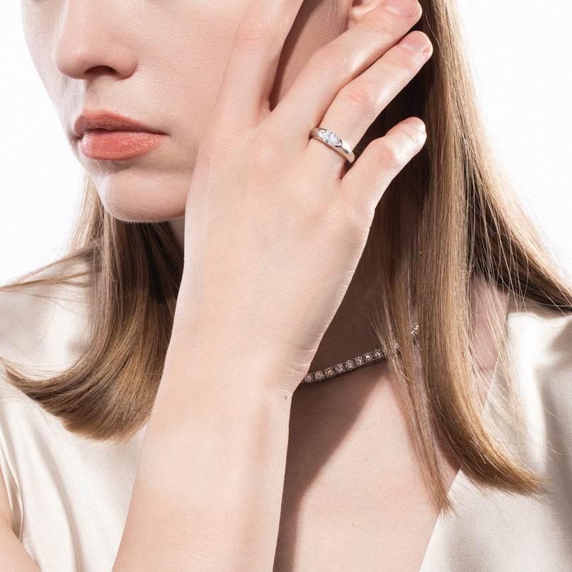 The expertly cut marquise Moissanite maximizes fire and light reflection, making it a symbol of eternal love and elegance. Its unique shape stands out as a modern yet classic choice for proposals, anniversaries, or daily wear.