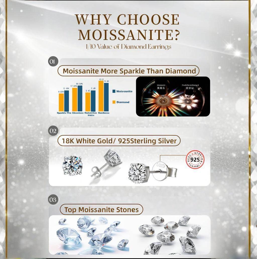 Packaged elegantly, these earrings are ideal for Christmas, Valentineâs Day, birthdays, weddings, or anniversaries. For Moissanite (0.5ct), each pair comes in a luxurious jewelry box with a GRA certificate, featuring a unique Girdle Inscription for authenticity. For CZ (0.5ct), theyâre presented in elegant standard packaging, making them a thoughtful and luxurious gift for someone special.