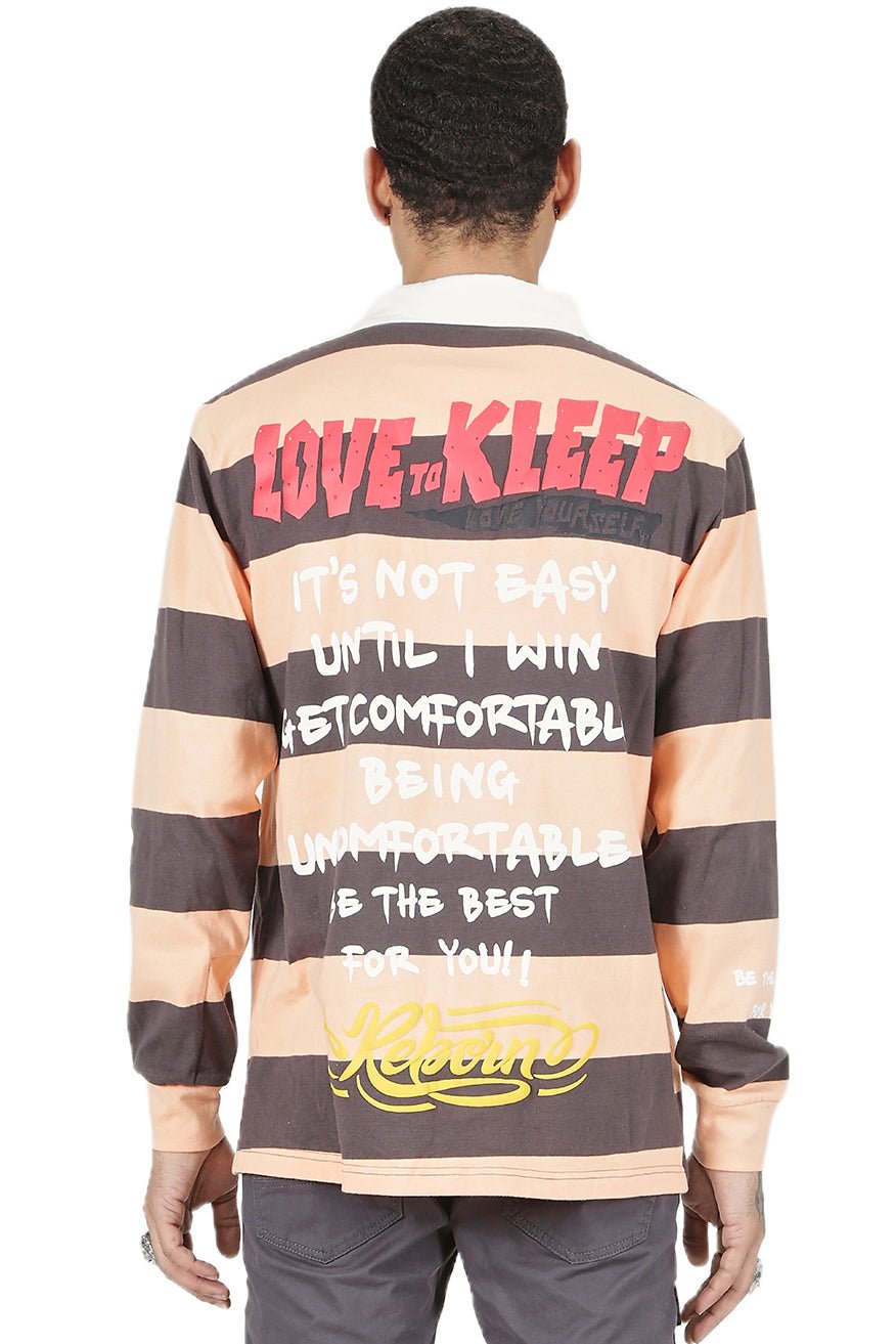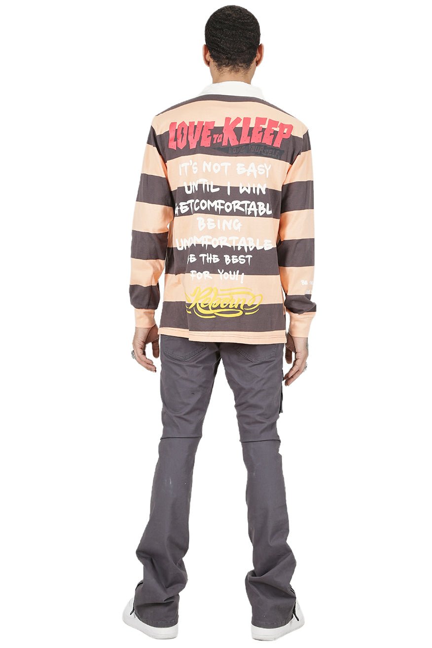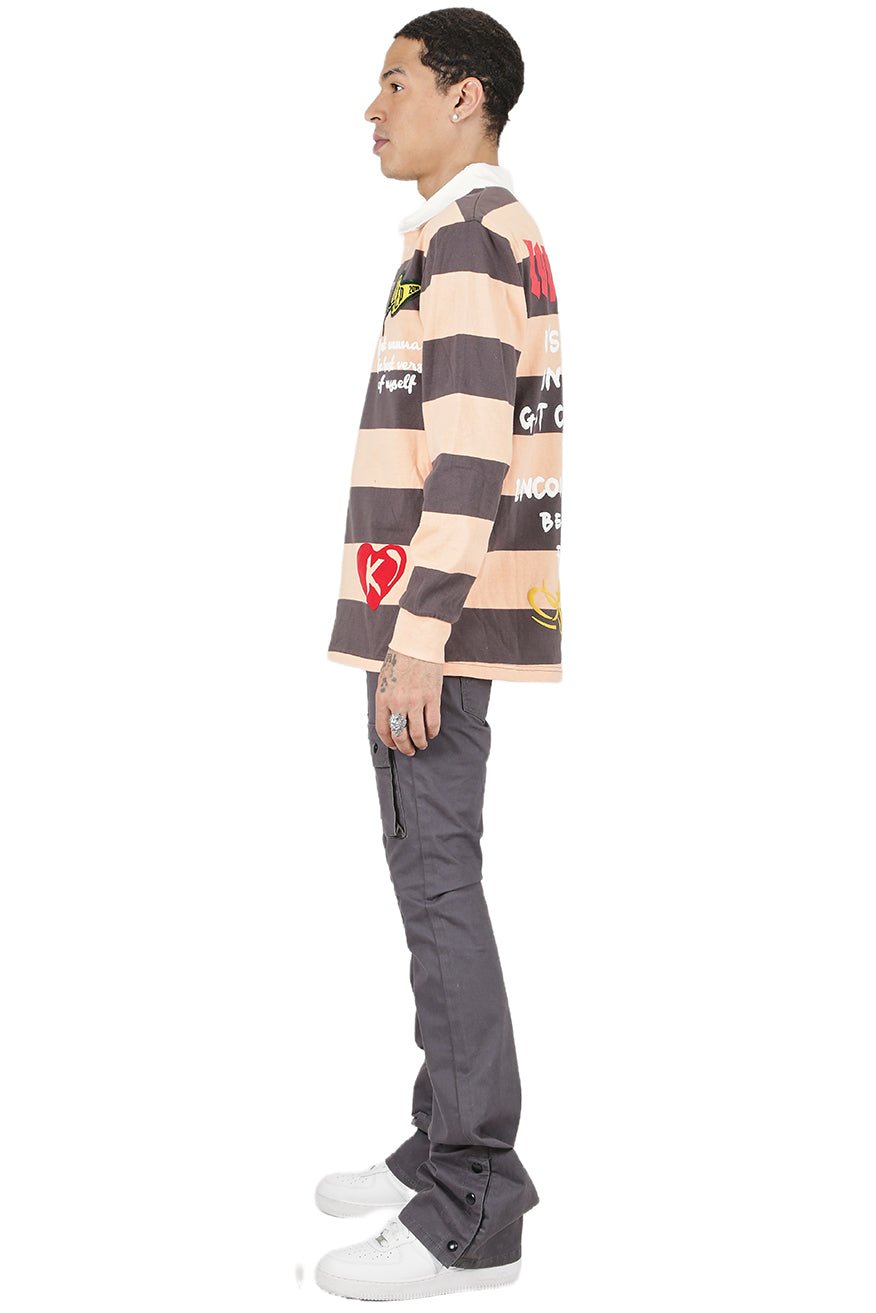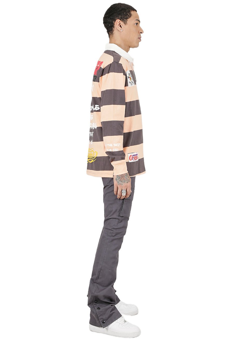 - Men's long sleeve polo shirt with heavy print effects & patch works.