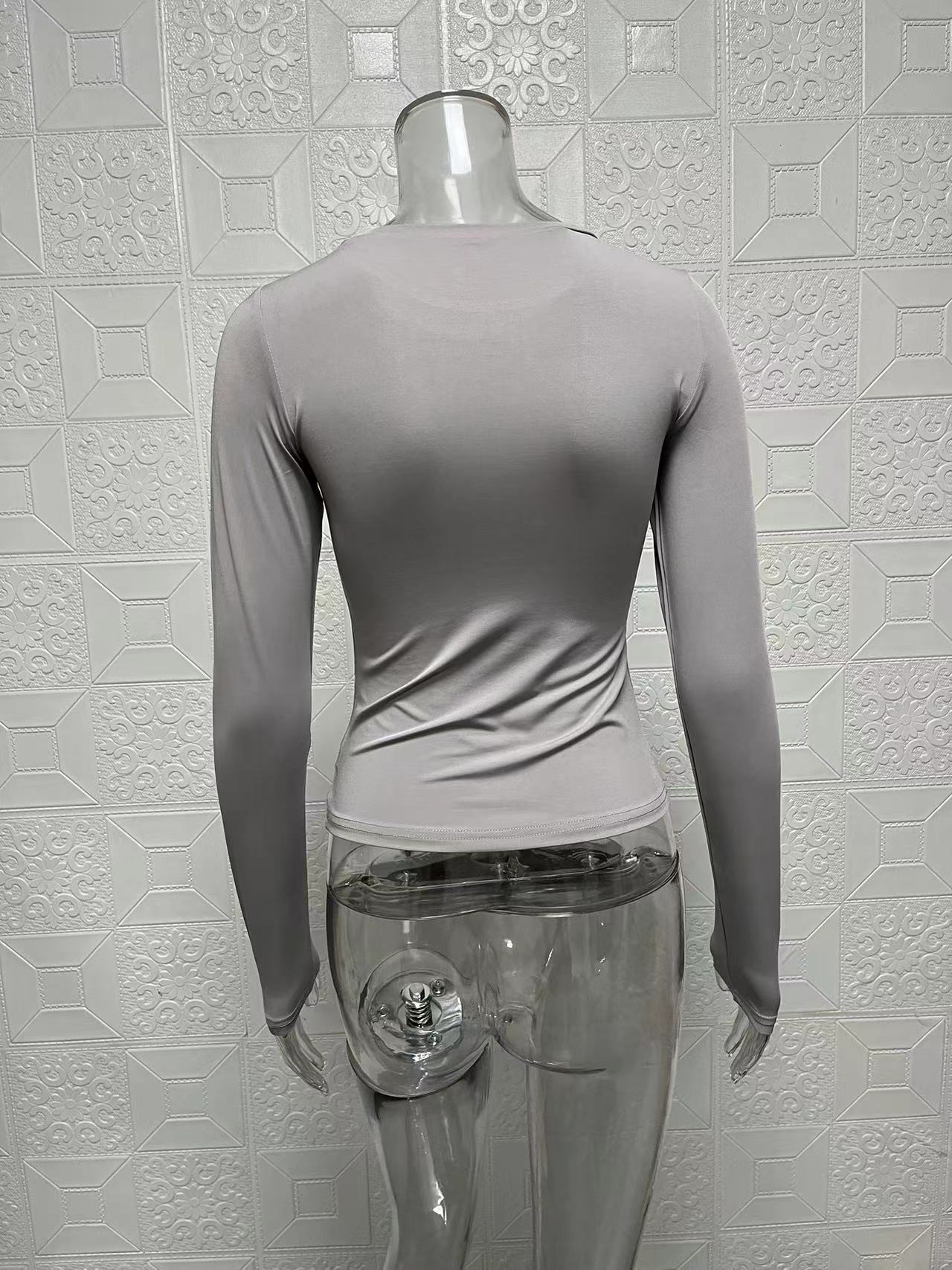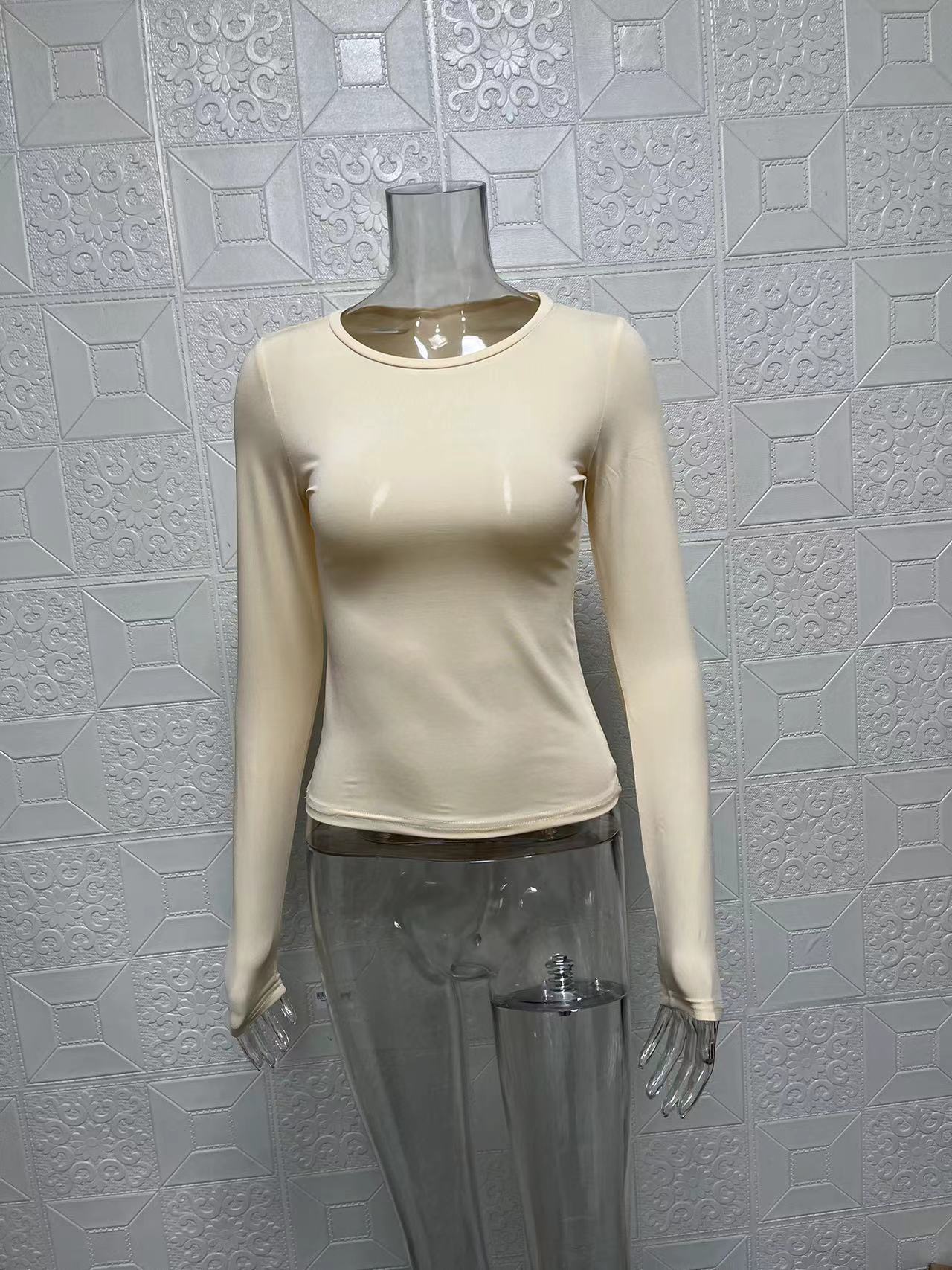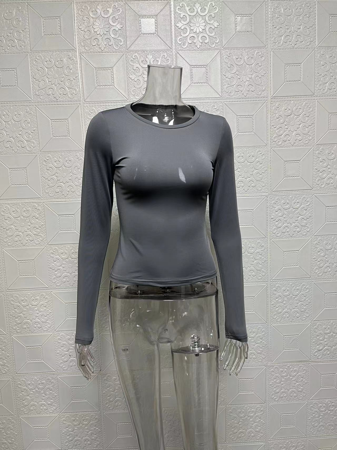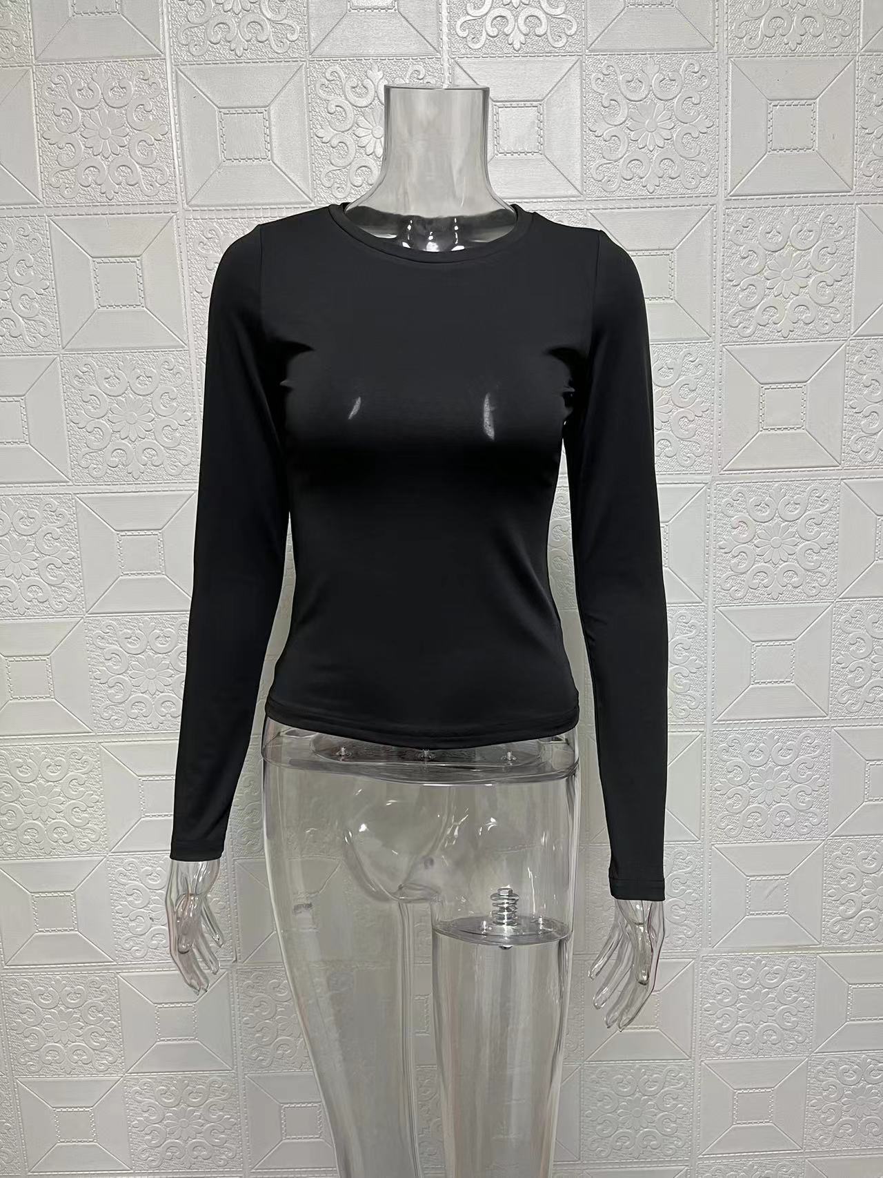 Spring Summer Women round Neck Fashionable Fitted Long Sleeve Solid Color T shirt for Women