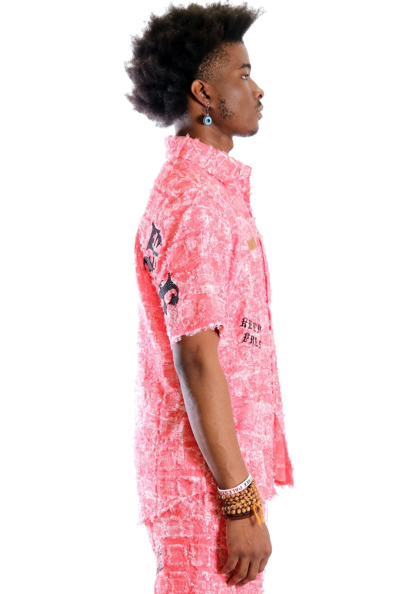 - New L.T.K. Men's premium ripped & repaired short sleeve button down shirt with heavy embroidery effects.