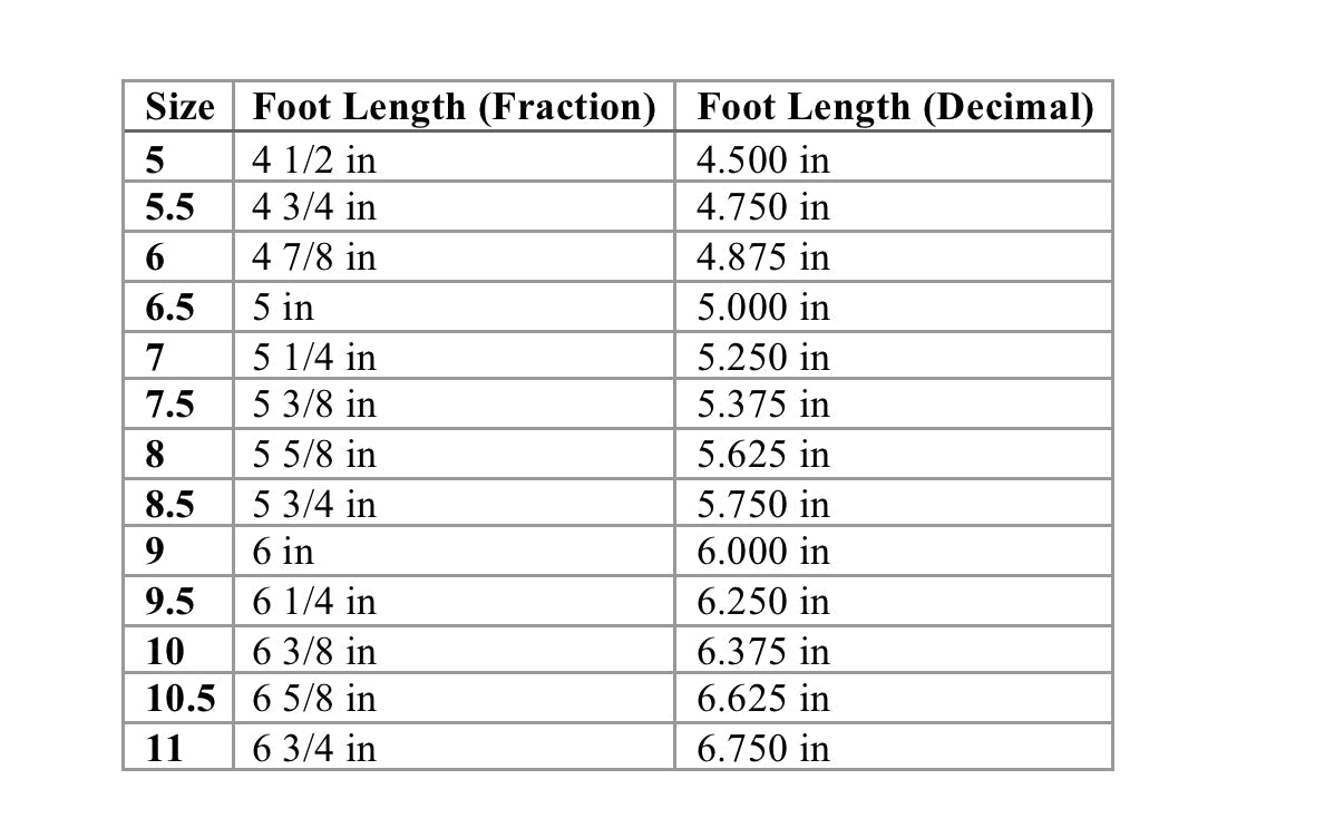 Foot Length (Fraction) |