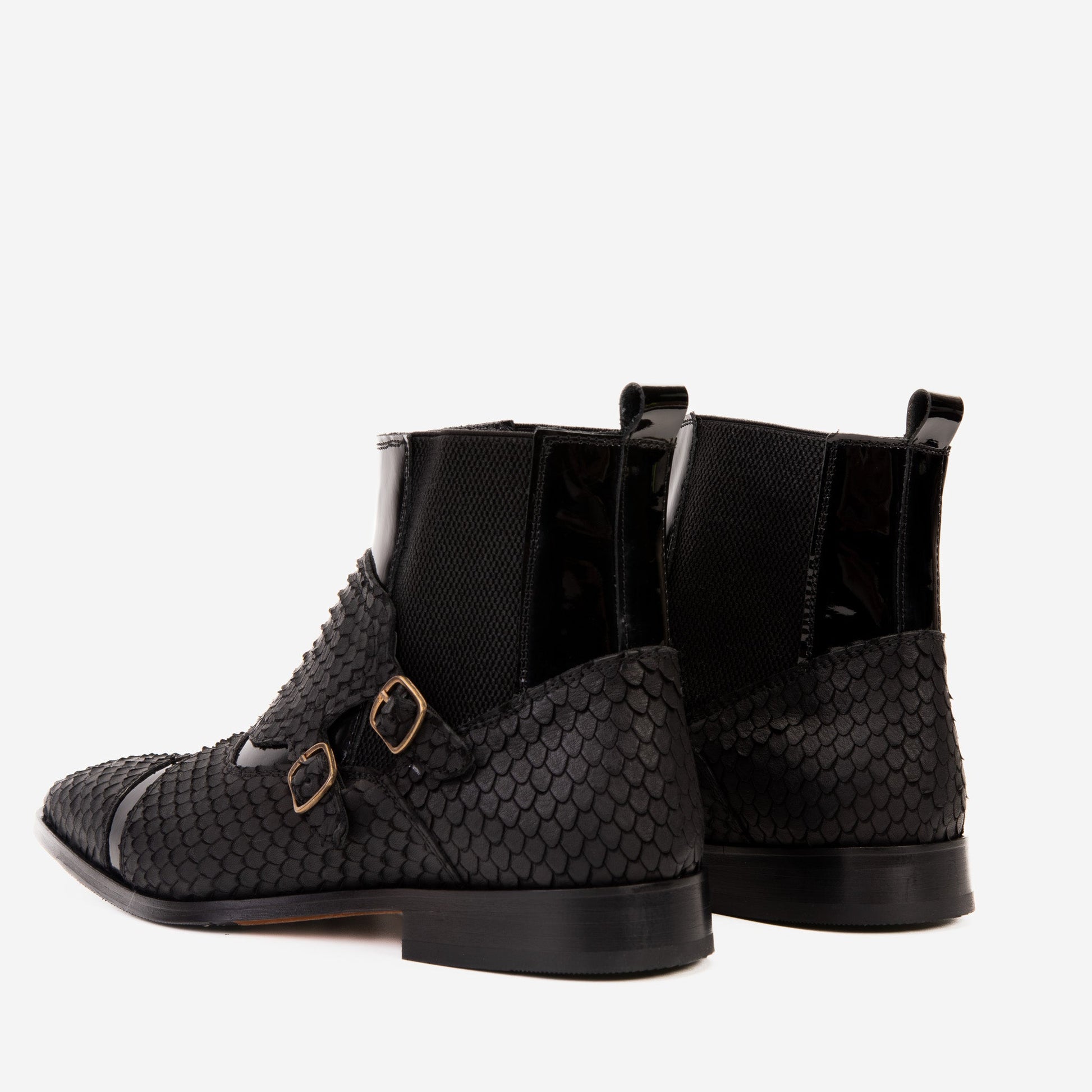The Orion Black Snakeskin Pattern Leather Double Monk Strap Boot