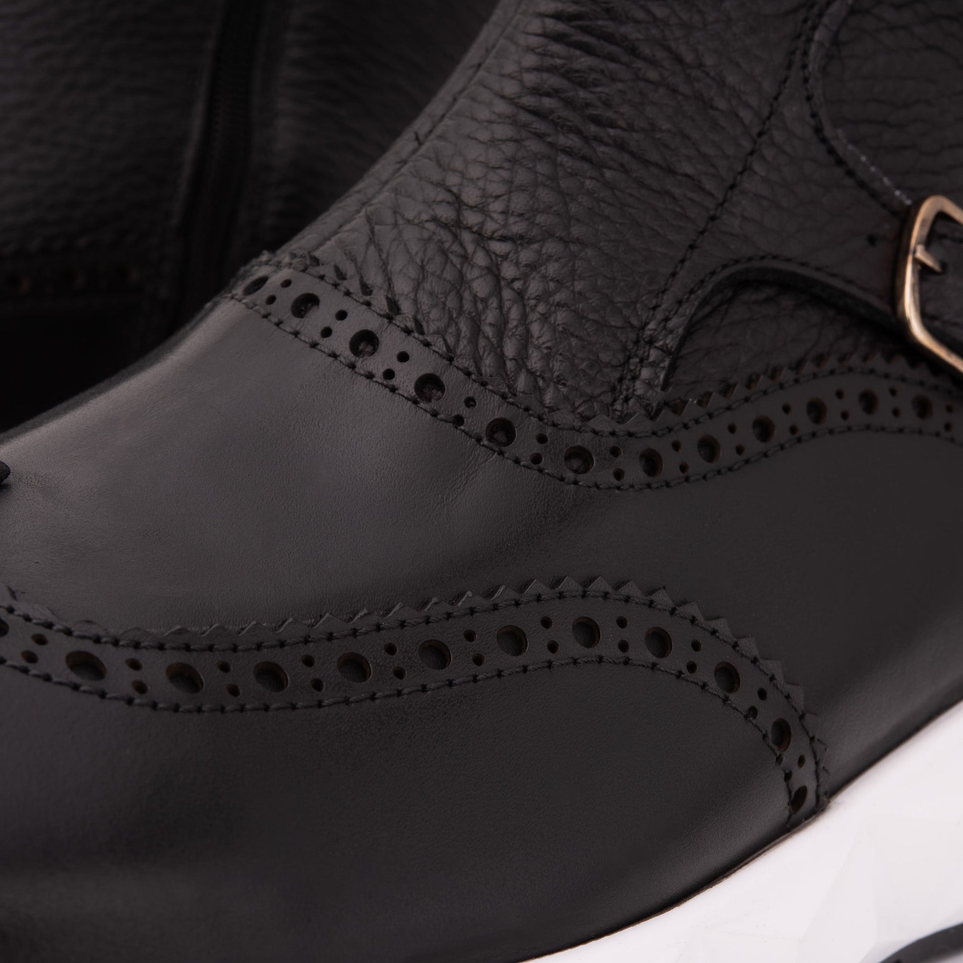 The Stealth Wingtip Buckle Black Leather Men Boot