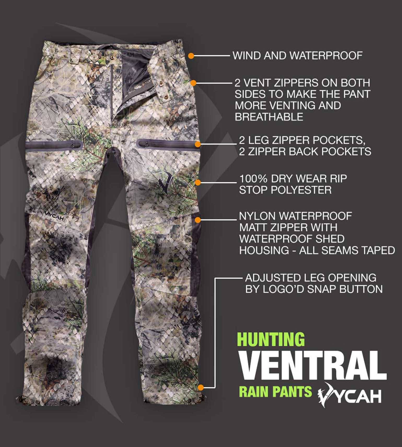 If you’re going to intersect a bruiser when he gets up to feed after the rain stops, you’d better be in the stand already. The Ventral Rain Pants are the ultimate in lower-body hunting rainwear. With full wind and waterproof construction, double taped seams, and specifically designed pockets to get you comfortable hunting in the rain, you’ll never have an excuse to skip a hunt.
