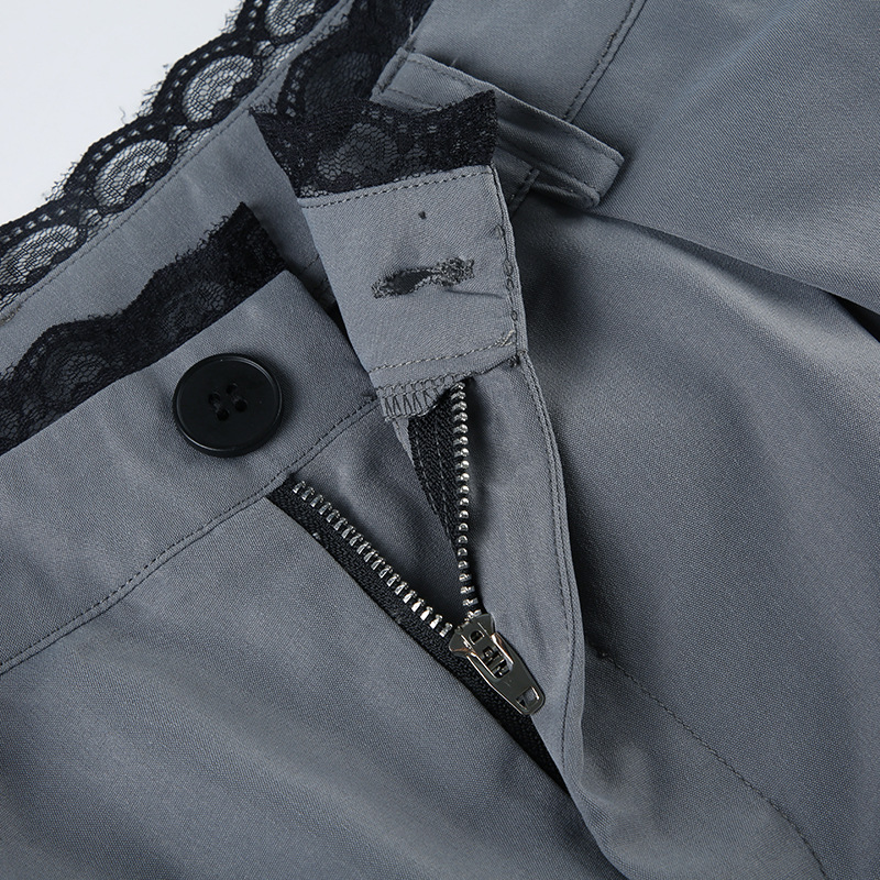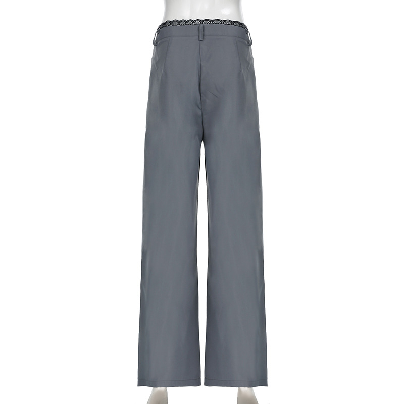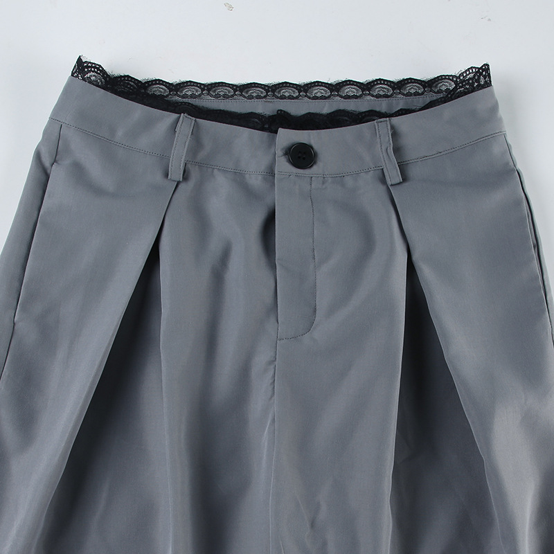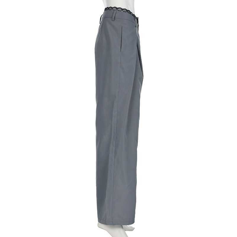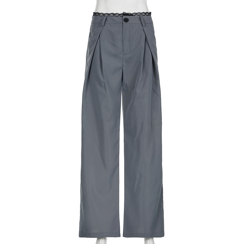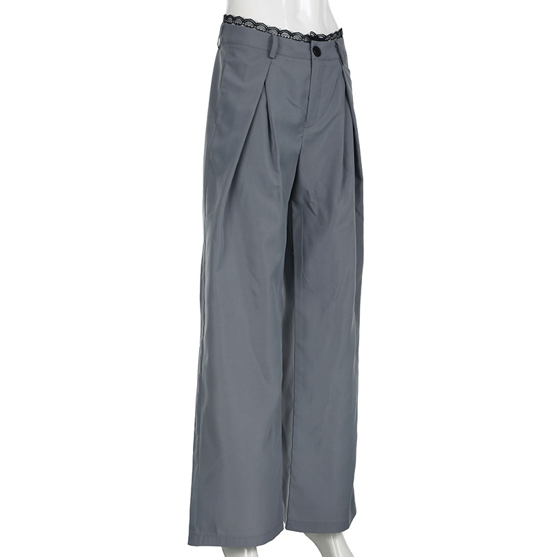 Women Clothing Lace Stitching Work Pant Autumn Urban Lightly Mature High Waist Loose Wide Legs Mop Trousers No Belt